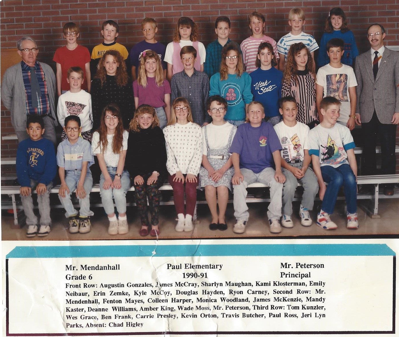 This is our 6th grade class picture from Paul Elementary, Paul, Idaho. This was the 1990 – 1991 school year.